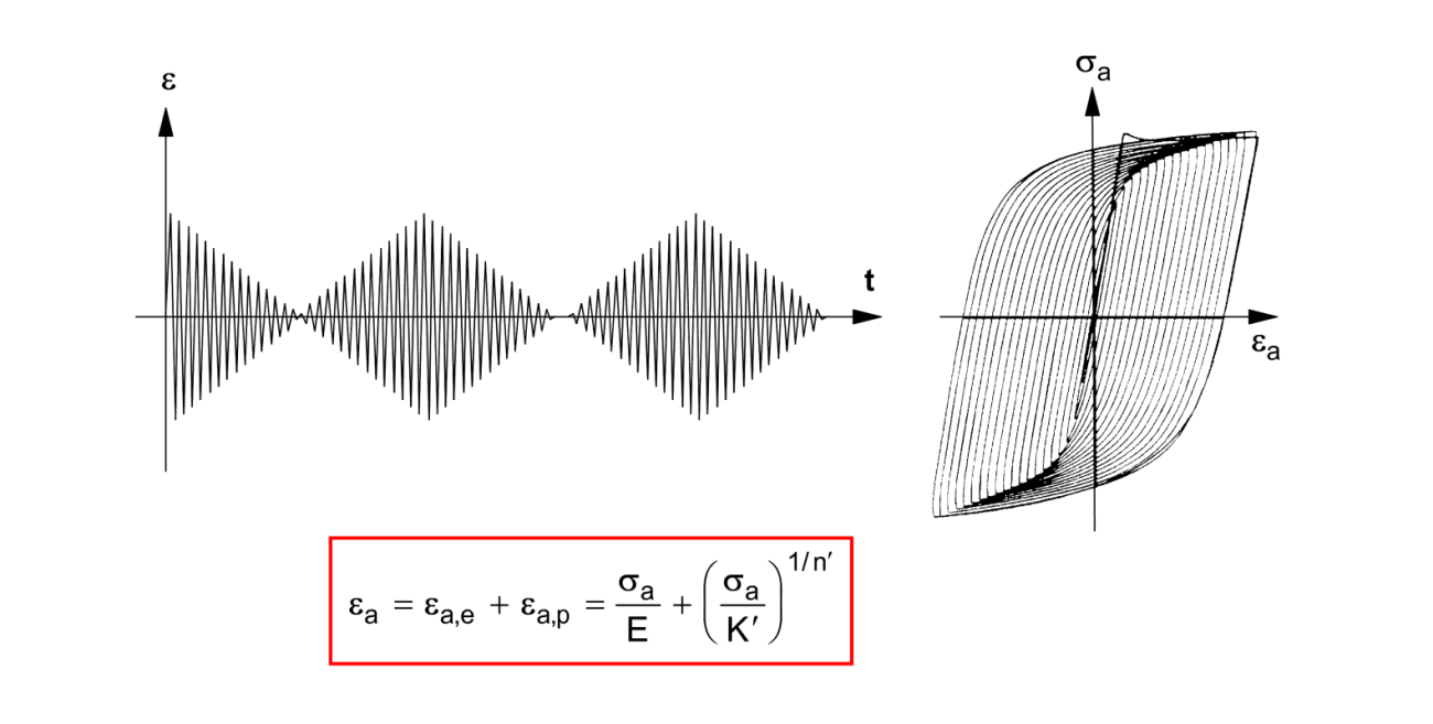Stress-strain curves, strain life curves and mean stress parameter life curves for cyclic loading are the main components of the database.